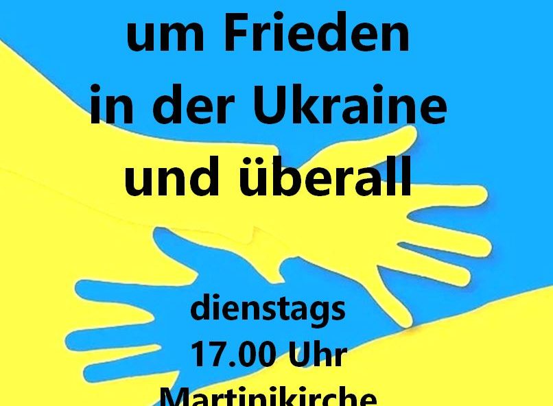 Kerzen sind am Leuchter entzündet, drumherum stehen Stühle. Nachdem die kleine Glocke geläutet hat, erklingen erste Töne: Zum Beten um Frieden in der Ukraine und überall laden Sabine Beck, Heike Gottmann, Konstantia Schöps und ich ein. Gemeinsam zu beten, trägt uns. Schön, wenn Sie das Gebet gedanklich begleiten. Und schön, wenn Sie dabei sind. Ob…