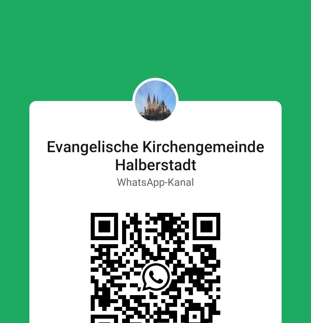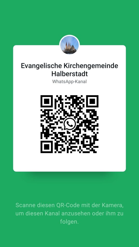 In unregelmäßigen Abständen veröfffentlichen wir Infos, Neuigkeiten und Einladung zum kirchlichen Leben unserer Gemeinde auch über einen Whats-App-Kanal. Wenn Sie ihm folgen möchten, können Sie dafür den Code nutzen. (Klicken Sie dafür zunächst auf den Beitrag, um den vollständigen Code angezeigt zu bekommen.) Bitte lesen Sie dazu auch unsere Datenschutzhinweise: